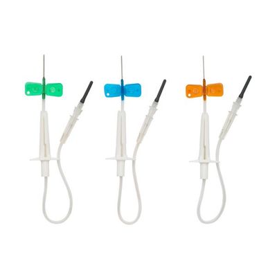 Siliconized short bevel needle for smooth insertion. Computerized grinding and 100% visual camera inspection ensures sharp, consistent, quality needles. Flexible color-coded wing for improved tactile feel and easy gauge identification. Safety version features single-handed safety shield activation for convenience and ease of use.