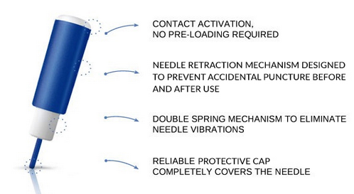 and after use to prevent sharps injuries - Self-destructing mechanism preventing reuse of the device