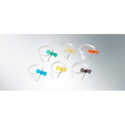 Intended for shorter time infusion. Stainless steel needle with length of 20 mm (4/5"), 30 cm plastic tubing.