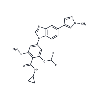 - Smiles: O=C(NC1CC1)C2=C(OC)C=C(C=C2OC(F)F)N3C=NC=4C=C(C=CC43)C=5C=NN(C5)C