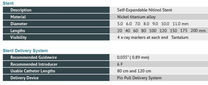 - Nitinol Stent with tantalum markers provides excellent visibility under fluoroscopy