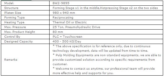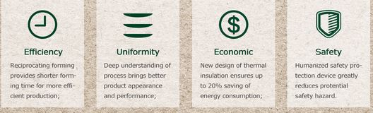 The semi-auto tableware machine is mainly applied for producing pulp molding one time use tableware, premium egg packaging, medical care items, high end industrial packaging products and so on. Pulp molding production line with semi-auto tableware machine as the forming system has the following features: