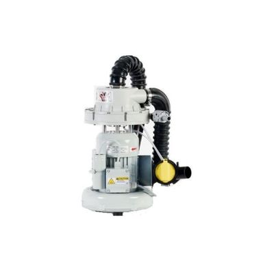 Semi-wet 0.75 Hp suction pump, maximum flow rate 1.100 l /min, underpressure 120 mbar. The high reliability of the centrifugal separation system guarantees correct operation of the suction pump for several years. The pump impellers are made of aluminum and guarantee maximum reliability over time. The HYBRID 1S model is also available with amalgam separator (code AS-075-EX-AS).