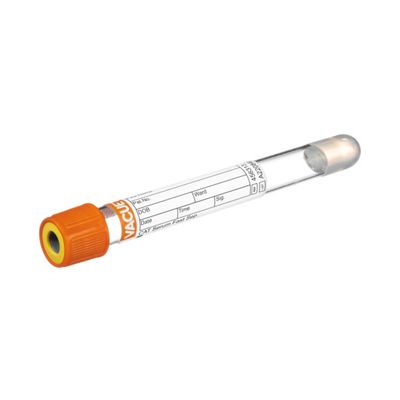 VACUETTE TUBE 5 ml CAT Serum Fast Separator 13x100 orange cap-yellow ring, non-ridged.