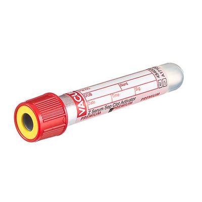 VACUETTE® TUBE 2.5 ml CAT Serum Separator Clot Activator 13x75 red cap-yellow ring, PREMIUM.