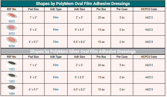 A variety of oval sizes offer a secure fit for wounds on elbows, knees, and other contoured area of the body where the dressing needs to bend and conform.