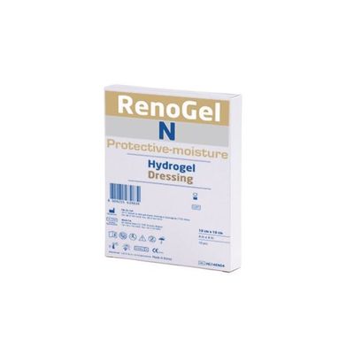 Renogel N is a sheet type transparent hydrogel dressing containing moisture.Hydrogel supply moisture to dried scab and skin. It also absorbs wound exudates and keeps the moisture balance in the wound.