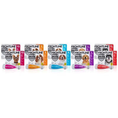 FRONTLINE Shield for Dogs is an effective monthly topical product for treatment of fleas, ticks, and chewing lice, and repellency ofmosquitos, ticks and stable flies. Effectively controls existing infestations and prevents reinfestations of fleas, ticks and chewing lice. Protects for a full 30 days.