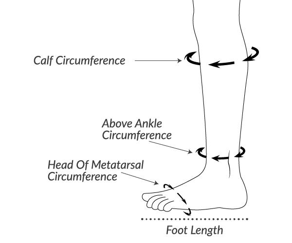 - Step – 1 : Measure the circumference of Calf, ankle and foot and Choose the appropriate size from given chart