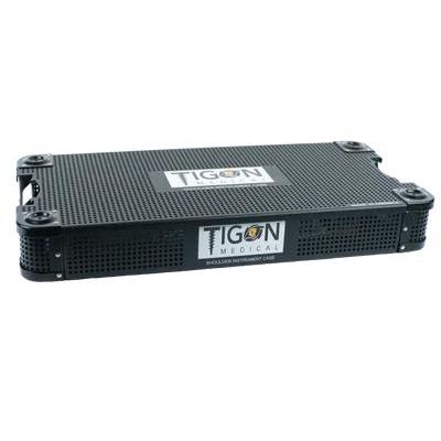 The Tigon Medical shoulder instrument case is a compact, single layer tray that contains all the reusable instruments needed to complete a rotator cuff repair. The case features brackets to securely hold the instruments, as well as a compartment to store miscellaneous items and instruments that may be required during a surgery.