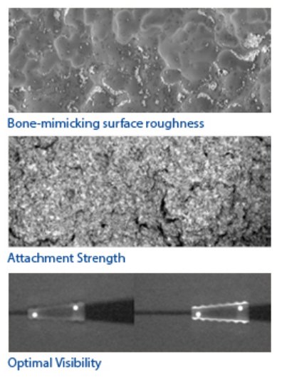Ti Plasma Coated Surface provides enhanced stability, improved imaging properties and increased migration resistance