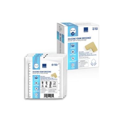 Abena’s Silicone Foam Dressing is a highly absorbent self-adherent silicone foam dressing consisting of a soft silicone contact layer, a flexible polyurethane foam pad, and a vapor-permeable, moisture-proof outer film. The silicone adhesive sticks to surrounding skin but not to the wound bed, helping to minimize pain and the risk of damage to the wound area. The dressing is comfortable, conformable, and can be cut to fit. The triple-layered construction facilitates dynamic fluid management to provide the optimal moist wound environment, which helps promote faster wound closure and reduce risk of maceration. The gentle silicone layer can be lifted and repositioned without losing its adherence.