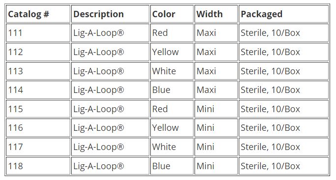 Silicone tapes for: retraction, occlusion, identification, 4 colors for identification, 2 widths, Non-particulate holder, Double packaged for ease of handling in O.R. 2 loops per pack.