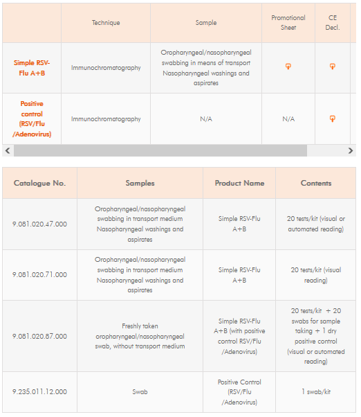 One-step immunochromatographic test combining two strips for the qualitative and differential detection of the Respiratory Syncytial Virus (RSV) and Influenza virus types A and B (both types in separate bands), from respiratory samples such us nasopharyngeal swabs, washes and aspirates.