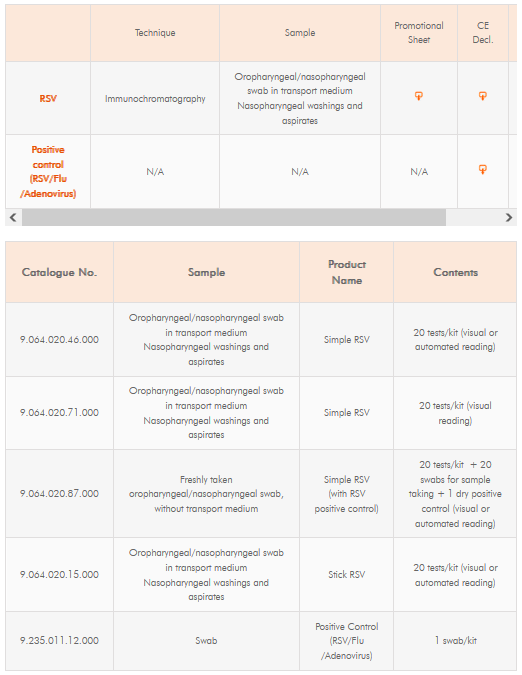 The RSV immunoassay from OPERON is a rapid and easy test for the qualitative detection of the Respiratory Syncytial Virus (RSV) fusion protein antigen in nasal and nasopharyngeal swab samples, as well as in samples of nasopharyngeal washes and aspirates.