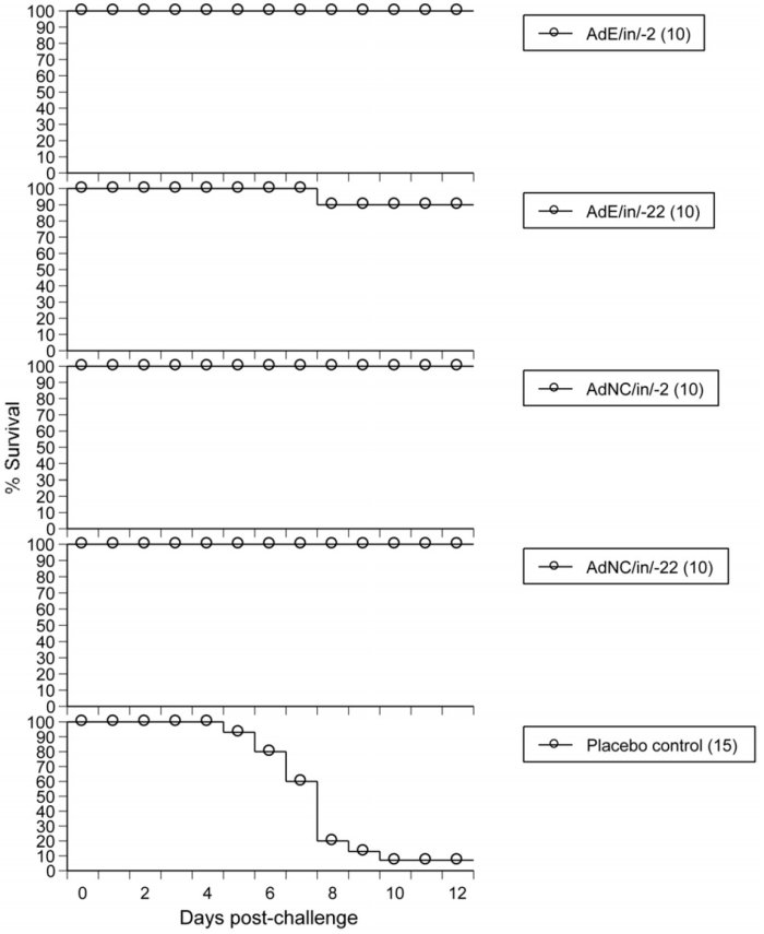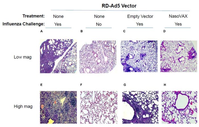 - Intranasal administration (2.5 x108ifu) of either empty vector (vector without antigen) or NasoVAX (vector with antigen)
