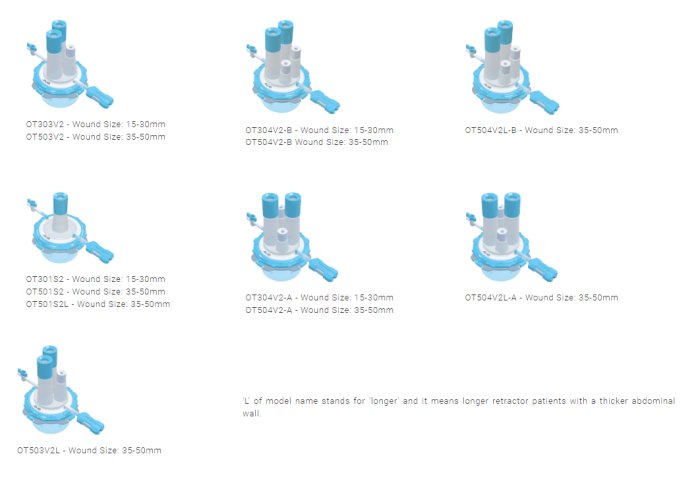 Different types of diameter & number of ports and lengths of wound retractor can be selected according to patients` state and surgeries` region. Use the appropriate type of OCTOPort considering your surgeries` circumstances.