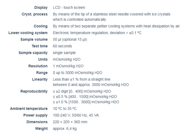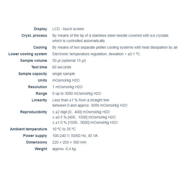 - The robust design of the measurement equipment makes the Osmomat 3000 easy to handle and maintain.