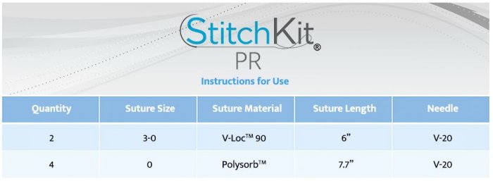 Indication for Use: StitchKit® Suture Delivery Canister facilitates minimally invasive robotic surgery by transporting suture to the operative field and removing used needles after suturing. The suture contained within the StitchKit® device is intended for soft tissue approximation where use of the specific absorbable or non-absorbable sutures contained within it is appropriate.