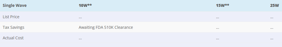 Laser model has a 30-Watt programable diode Upgradeable via code from 10 to 15, 20 or 25-Watts 0.1 up to 25-Watts Continuous Wave or Pulsed Wave in s, ms, us for each wavelength. Continuous Wave / Pulsed Lasers. Available Colors: Navy Blue OR White. Upgradable** – Laser is either: 10W, 15W OR 25W +980nm OR 810nm.
