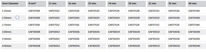 Stent Diameter(mm): 2.25, 2.50, 2.75, 3.00, 3.50, 4.00