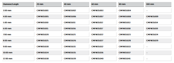 Balloon Diameter (mm): 3.00, 4.00, 5.00, 6.00, 7.00, 8.00, 9.00, 10.00, 12.00
