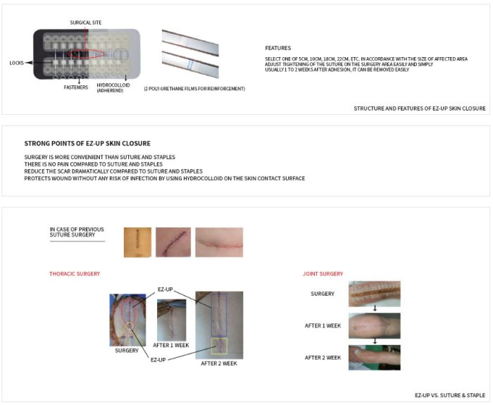 EZ-UP skin closure is easier to use, faster and safer than previous suture and allows you to protect wounds safely and minimize the scar as medical suture maintenance device.