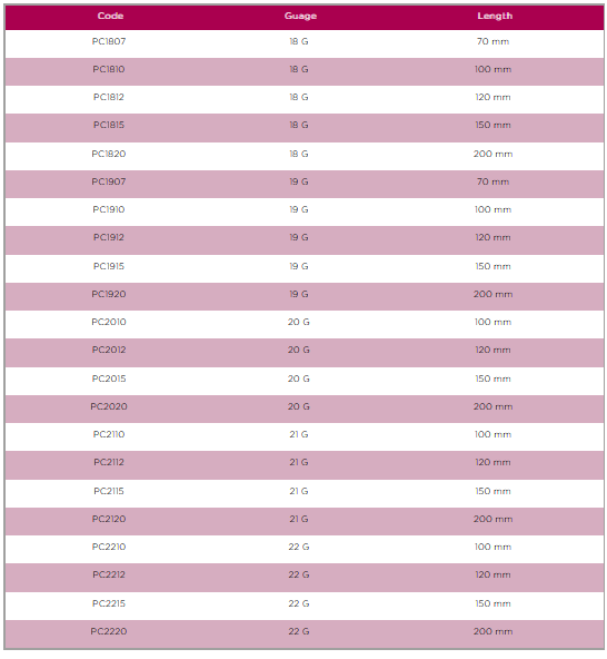 The needle is also equipped with a sharpened luer lock with full thread to offer safer syringe connection without vacuum pressure loss. Optionally, the NeedleVise® safety device can be added to the needle using reference code: PCRxxyy.