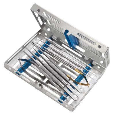The Medesy Soft Tissue Surgical Kit offers a meticulously curated selection of instruments designed to facilitate soft tissue procedures in the dental field. This kit includes tweezers, needle holders, scalpels, scissors, and periosteal elevators, all packaged within the highly reliable GAMMAFIX sterilisation trays. These trays are engineered to ensure maximum safety during handling and sterilisation without compromising the integrity of the instruments. Created in partnership with esteemed dental professionals, this kit serves the needs of dental practitioners by providing essential tools that are both reliable and efficient for surgical applications. Each component of the kit is optimized for usability and safety, making it an asset for professionals looking to enhance their surgical procedures with precision and trustworthiness.