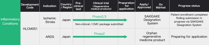Healios began developing somatic stem cell regenerative medicine after entering into a license agreement with Athersys, Inc. (NASDAQ: ATHX, “Athersys”) in 2016. Athersys’ stem cell product MultiStem® (HLCM051) is a cell therapy product derived from human bone marrow of consenting adult donors. The clinical grade product is produced by first creating a master cell bank, then a working cell bank, and subsequently producing clinical doses for patients. Athersys holds the patent and licensing rights to this important technology, and has conducted multiple studies demonstrating that it exhibits a consistent safety profile and therapeutic potential. HLCM051 can be stored for long periods of time using cryopreservation, does not require immunosuppressants, and dissipates rather than accumulating within the body when administered by intravenous injection (drip). The cells are believed to promote healing and recovery through several important mechanisms.