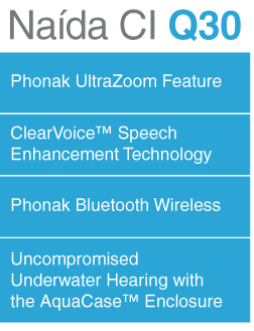 The Nai´da CI Q30 sound processor from Advanced Bionics provides groundbreaking features that help you to effortlessly hear in any environment. The technologies of AB and Phonak, the innovation leaders in cochlear implants and hearing instruments, have evolved to provide advantages no other manufacturer can match.