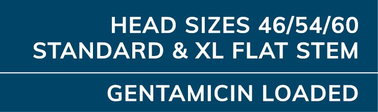 Spacer®-G Flat Stem is the preformed spacer for hip preloaded with Gentamicin. The device includes a load-bearing structure in stainless steel, with a rectangular flat stem. It’s available in 3 different head sizes (46-54-60mm) and 2 different stem lengths.