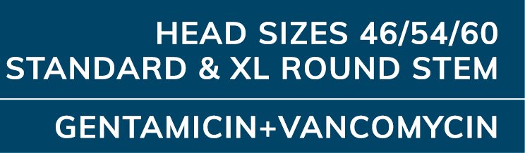 Vancogenx®-Space Hip is the preformed spacer for hip preloaded with Gentamicin and Vancomycin. The device includes a load-bearing structure in stainless steel, with a standard tapered stem. It’s available in 3 different head sizes (46-54-60mm) and 2 different stem lengths.