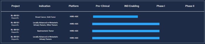 BL-B01D1 is currently being evaluated as a single agent in clinical trials enrolling patients with a variety of EGFR+ and HER3+ solid tumor indications.