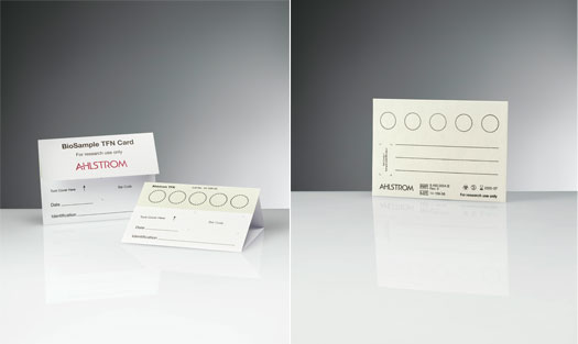 Easy Collection - Ambient Storage - Simple Extraction. Ahlstrom BioSample TFN card is designed for dried blood spot (DBS) collection, transport and storage at ambient temperature.