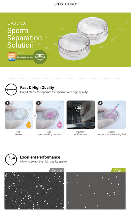 CA0/CA1 Sperm Separation Solution; Simple, Fast, Centrifuge Free, Excellent Performance.