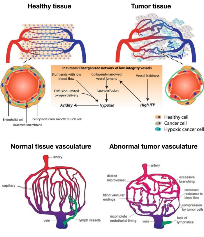 Frequent failures of chemotherapy treatments in clinical applications are due to their inability to reach the tumor cells, particularly in instances of a vascular disruption of abnormal tumor vessels. Re-instating vascular normalization is therefore one of the key prerequisites for efficient therapy.