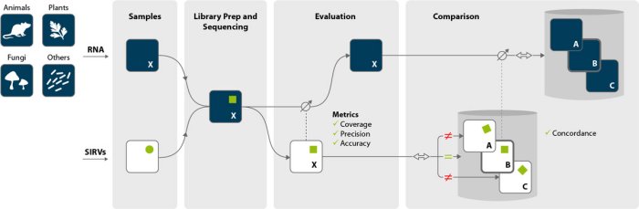 ComparisonBecause SIRV data sets are well defined and compact, all comparisons require proportionally less computational power ensuring fast processing. Differences between the linked SIRV data sets mirror proportionally the main data of the endogenous RNA. Concordance is independent of the accuracy but describes the coherence of data sets and identifies endogenous RNA data sets that are suitable for meaningful comparisons, e.g., for differential expression analyses.