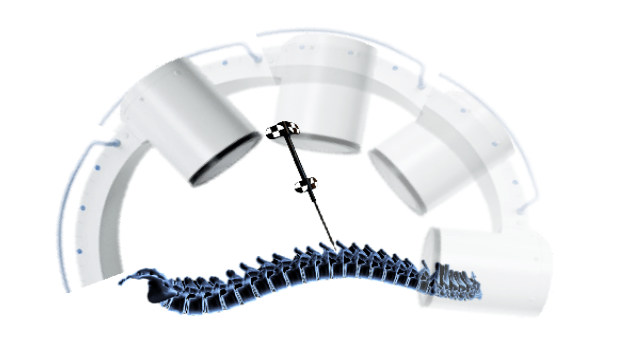 easyNav™ navigation softwareenables intraoperative integration of 3D C-arm for spine surgeries which allows automatic registration of intraoperative scan. The quick and reliable automatic image registration combined with pedicle screw planning makes your surgeries more precise and safer. Axial view acquired from 3D C-Arm ensures better accuracy in minimally invasive surgeries.