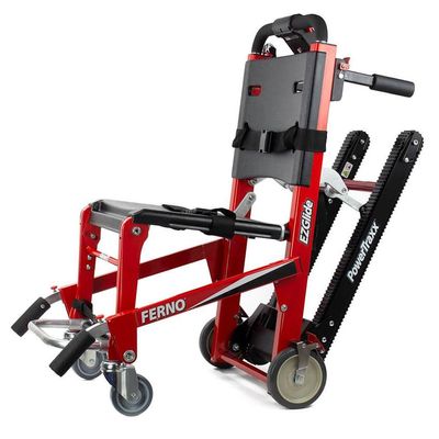 The EZ-Glide Stair Chair with POWERTraxx provides maximum safety and power when transporting a patient up or down stairs. Its electronically-controlled motor, direct drive transmission, and powered tracks push and pull patient loads of up to 500 lb. The chair and track system carry the weight, increasing patient safety and reducing operator fatigue and risk of injury. Motorized tracks power the chair up and down stairs. See the EZ-Glide with POWERTraxx in action in the video below, produced by FERNO Italy (a FERNO Group Company).