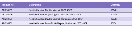 Designed to provide a safe and easy way to store and count various types of sharps used during a procedure