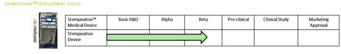 Stempeutron™ is the first product to use novel robotic and filtration technology to isolate clinical grade stem cells from adipose tissue. It is now established that SVF derived from fat tissue is a rich source of mesenchymal stromal cells and endothelial progenitor cells, as well as other tissue-building cells such as vascular smooth muscle cells, pericytes, pre-adipocytes and fibroblasts. SVF therefore has broad clinical utility in cell therapy and regenerative medicine for repair of diseased organs as well as in plastic and reconstructive surgery. Isolation of SVF typically requires fat to be harvested by liposuction, washed, enzymatically digested and centrifuged to recover the cells. Manual processing has been in practice for some time, but requires skilled technicians, expensive infrastructure and laboratory with GMP and GCP compliance, which are not available at most healthcare units. Isolation in a certified external laboratory entails storage, handling and transportation of fat tissue and cells from and to the clinic, and multiple patient visits. Stempeutron™ is specifically designed to help overcome most, if not all, of the shortcomings of the status quo. The proof of concept for the Alpha device has been established. The Beta device is currently under development. Stempeutics holds 5 usage patent applications and 4 design patents relating to Stempeutron™. Stempeutron device patent has been granted from US, Japan and South Korea. Stempeutics is seeking collaborative partnerships to complete the development of the Beta device with a view to subsequent divestment of the Stempeutron™ asset.