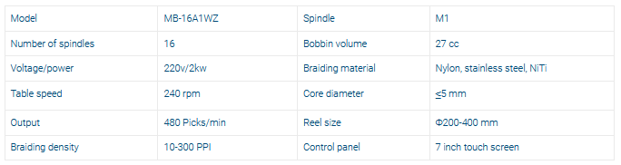 MB Stent and Occluder Braiding Series has a wide spindle number choice from 16 to 288, and supports variable-pitch braiding with continuous or sudden changes of braiding pitch up to 300 PPI.