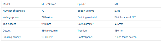 MB Stent and Occluder Braiding Series has a wide spindle number choice from 16 to 288, and supports variable-pitch braiding with continuous or sudden changes of braiding pitch up to 300 PPI.