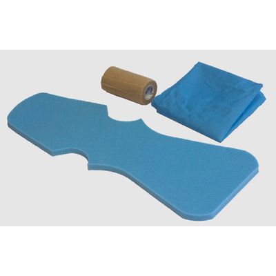 Soule Medical`s Sterile Knee Holder Pad with cohesive wrap is designed to fit multiple knee positining systems. The memory foam padding and cohesive wrap help protect the patient from pressure sores, and abrasions while securing the foot to the boot. Perforations in the pad allows for a universal fit to the appropriate knee positioning system