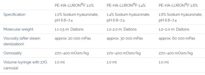 PE-HA-LURON F - Model 1.0% | 1.4% | 1.6% | 1.8% | 2.2% | 3.0% -Sterile Viscoelastic Solution based on Bio-Fermented Sodium Hyaluronate