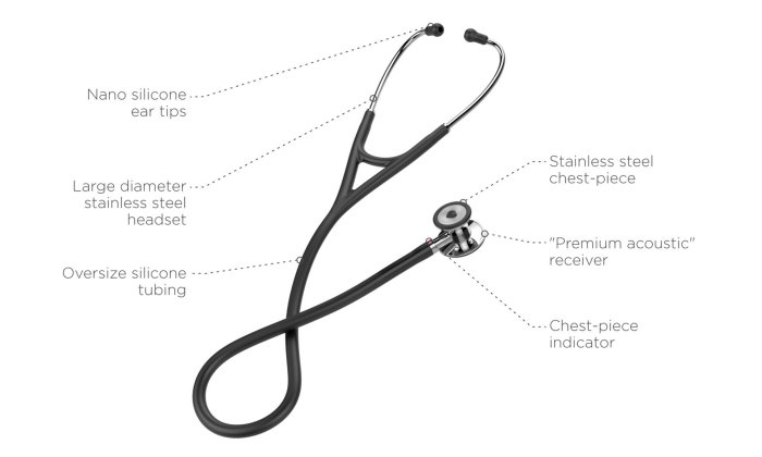 For stethoscopes with a double chest-piece, we have included a simple red dot that indicates the active side of the chest-piece, whether adult or pediatric, to help you detect correct placement immediately and easily. We came by this idea through observation of doctors, an idea as simple as a dot but which revolutionizes the use of the stethoscope offering time saving and practicality of use.