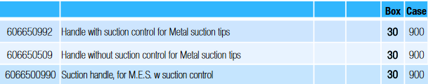 A handle for easy and quick connection between the tubing and the metal suction tip, the luer slip male end for connecting the suction tip makes it easy for the surgeon to switch suction tips during surgery. Available in three versions: Without Vacuum Control I With Vacuum Control I With Vacuum Control + Longer Pen Style These suction control handles lit all metal suction tips and the nasal suction tips with Luer connector.