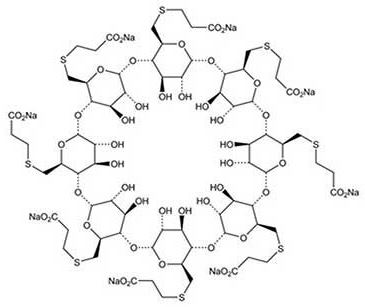 Sugammadex is an octasaccharide derivative used for reversal of neuromuscular blockade induced by rocuronium bromide and vecuronium bromide in adults undergoing surgery. The encapsulation by sugammadex blocks the ability of the neuromuscular blocking agents to bind to nicotinic receptors in the neuromuscular junction and thereby reverses the induced neuromuscular blockade.