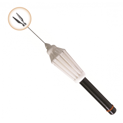 The Super Grip Forceps are designed for precision in ophthalmic procedures, particularly vitreoretinal surgeries. This single-use instrument features 3D anti-shredding tips to enhance grasping force, reaching up to 100 grams. The forceps are equipped with micro serrations on the broad platforms, allowing effective handling of fibrous membranes. A 360° handle actuation ensures ease of use, while the longer 32 mm shaft is advantageous for myopic eyes. Low pressure actuation and short stroke functions contribute to optimal control during surgery. Color-coded handles provide straightforward identification, and a removable handle option enables selective dexterity. Available in sizes 23 Ga, 25 Ga, and 27 Ga, the forceps come sterile in a box of five, making them ready for clinical use.